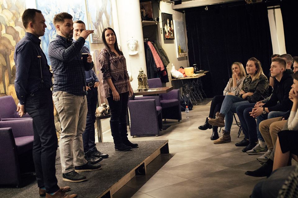 LevelUp 3 mēnešu improvizācijas un publiskās runas praktiskās nodarbībās uzlabos prasmi uzstāties publikas priekšā un pilnveidos komunikācijas spējas. Nodarbībās: • Improvizācijas noslēpumi, kas palīdz veiksmīgāk komunicēt ar apkārtējiem; • Kā nomierināties un pārvarēt satraukumu pirms publiskās uzstāšanās; • Kā darboties ar auditoriju un ieinteresēt; • Humors kā veiksmīgas komunikācijas instruments; • Iemācīsies uzticēties sev vairāk, lai sasniegtu nospraustos mērķus; • Gūsi citas noderīgas prasmes un idejas, jautri pavadīsi laiku, kā arī iepazīsi talantīgus un interesantus cilvēkus. Dalībnieku skaits ierobežots, lai katrs saņemtu individuālu pieeju un gūtu pēc iespējas vairāk jaunu zināšanu. Samaksa: EUR 70/mēn. vai EUR 175 par 3 mēnešu kursu.