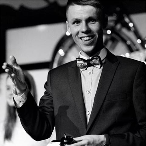 Improvizators / pasākumu vadītājs. Novadījis 300+ pasākumus – kāzas, jubilejas, konferences, festivālus, korporatīvos pasākumus, komandas saliedēšanas pasākumus. Vada izrādes un nodarbības jaunajiem improvizatoriem.